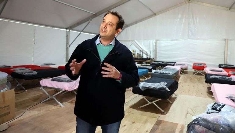 En este caso, agregó: "Hemos armado este dispositivo, un lugar para dormir para 130 personas, las cuales le vamos a brindar justamente un lugar calentito en estos días fríos, un plato de comida, un baño, también se podrá dar una ducha de agua caliente, la higiene es parte de la dignidad, y también tendrán un desayuno".