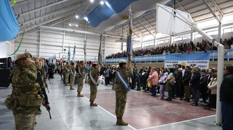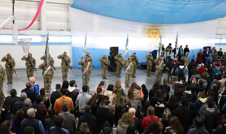 “Este día que nos convoca a todos y a todas a trabajar juntos, codo a codo, para hacer de nuestra ciudad, de nuestra provincia y país un espacio justo, equitativo e igualitario. Aceptamos ese desafío, trabajemos juntos”, destacó la Jefa de Gabinete, María Pasqualini, en el acto en conmemoración por el 214° aniversario de la Revolución de Mayo realizado este sábado por la mañana en el Salón de Actividades Físicas (SAF) del barrio San Lorenzo Sur, en el oeste de la capital neuquina.