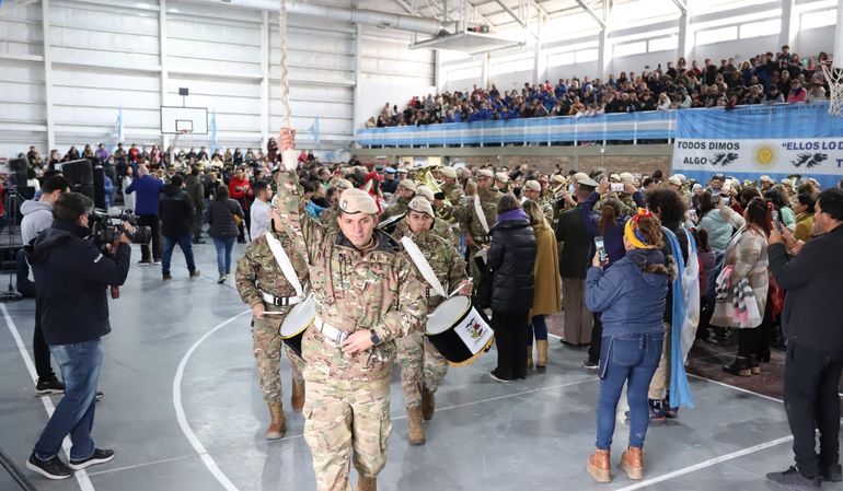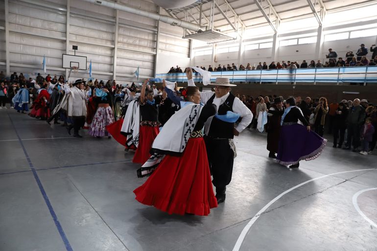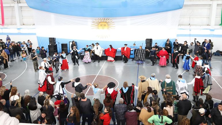 La Banda de Música del Batallón de Ingenieros de Montaña VI entonó las estrofas de los himnos nacional y provincial. Y a partir de las 12 hubo una gran peña con la participación de diversos grupos de danza folclórica y grupos musicales.