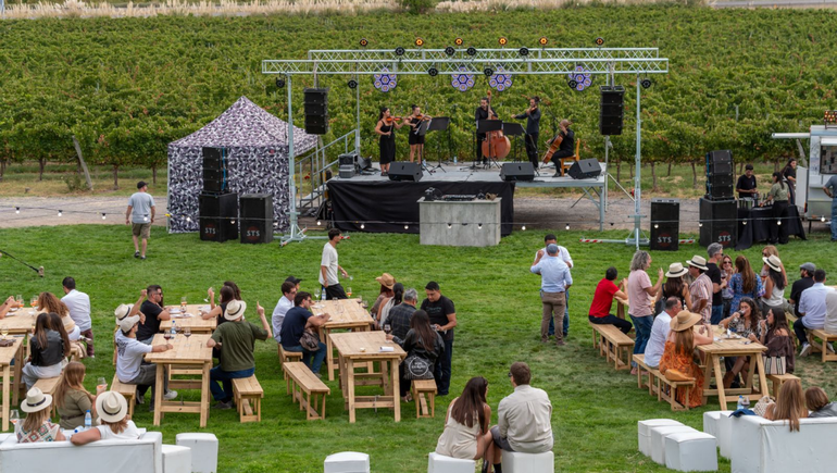 Con el apoyo del Ministerio de Turismo, Ambiente y Recursos Naturales provincial a través de Neuquentur, en la jornada se presentaró la Orquesta Sinfónica del Neuquén, que llevó la potencia de la música sinfónica a un escenario poco habitual, el corazón de una bodega patagónica.