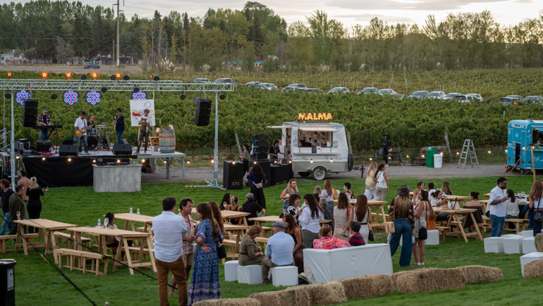 Los viñedos de Bodega Malma en San Patricio del Chañar fueron escenario este sábado 14 de una propuesta que combinó vino, música y experiencias creativas en plena naturaleza, desde el mediodía hasta el atardecer. El evento formó parte del ciclo de sunsets que la bodega viene realizando desde diciembre, pero en esta ocasión con una edición especial dedicada a celebrar la Vendimia Neuquina 2026.