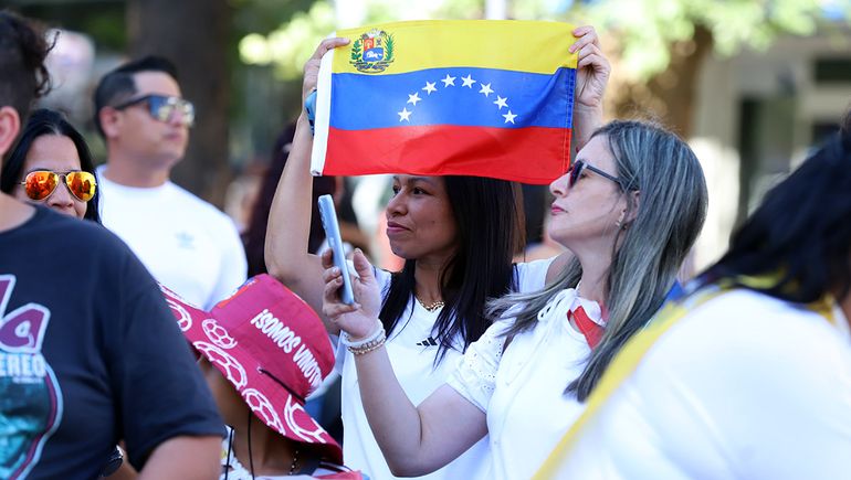 Con una bandera de 12 metros, especialmente guardada para este día, la comunidad venezolana residente en Neuquén y la zona encabezó una marcha tras el ataque de Estados Unidos a Caracas para detener al presidente de Venezuela, Nicolás Maduro.