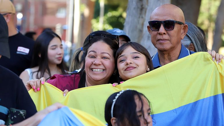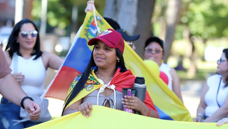 Ataviada con una camieseta vinotinto, una referente de la comunidad venezolana comenzó la marcha con una reflexión: "La gloria y la honra se la lleva Jehová de los ejércitos. Fue el que luchó, el que hizo posible lo que era imposible para cada uno de nosotros. Salimos de nuestro país y muchos perdieron la fe, pero Jesús tuvo el control de todo y el día de hoy, 3 de enero, nos ha dado la victoria".