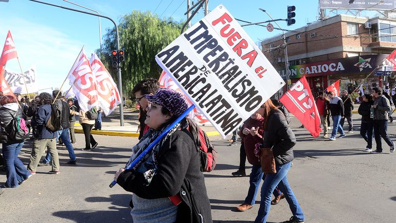Además de calles vacías y poco movimiento en pleno centro de la ciudad de Neuquén, durante la mañana se llevó adelante una importante movilización que recorrió la Avenida Argentina/Olascoaga, que concluyó con un acto en el monumento a San Martín.