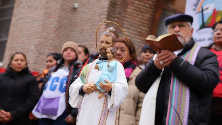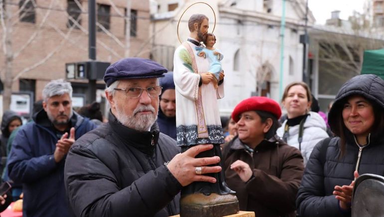 En una jornada fría, decenas de fieles concurrieron a la Catedral para compartir alimentos y escuchar las lecturas del obispo Croxatto. Durante el evento se realizó una olla popular, se compartió la mesa con pan y tortas fritas, y se repartieron algunos alimentos con estampitas del santo.