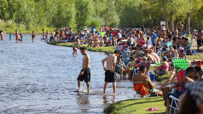 Con el termómetro que registró una máxima por encima de los 40 grados, la capital neuquina fue un infierno. Los neuquinos se refugiaron en el río para pasar la jornada de sumo calor.