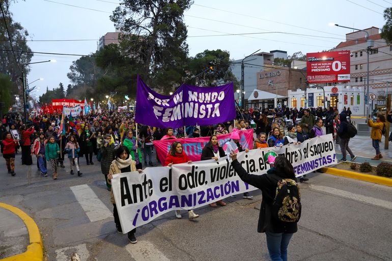 Este lunes por la tarde, miles de mujeres marcharon por las calles céntricas de Neuquén capital en una nueva edición del Ni Una Menos, contra la violencia machista, otras consignas que van en línea con el tiempo que se vive: el ajuste, el hambre y las políticas del presidente Javier Milei.