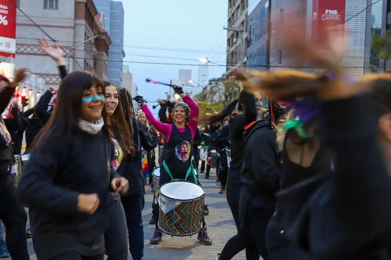 Desde las 17, comenzaron a congregarse miles de personas en el monumento a San Martín con carteles, vinchas, maquillajes y pañuelos para protestar contra la violencia hacia las mujeres. Antes de que comenzara la movilización se realizaron intervenciones artísticas y musicales.
