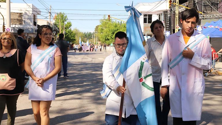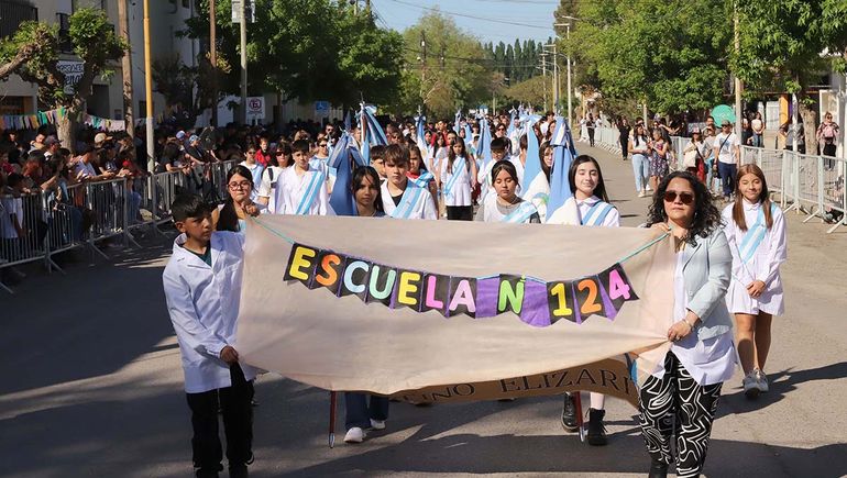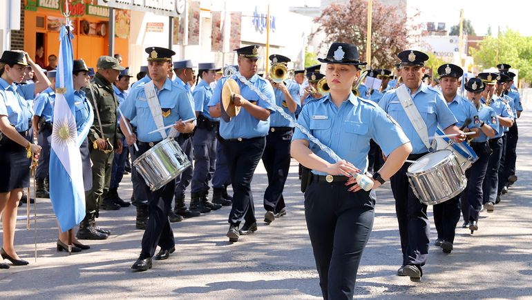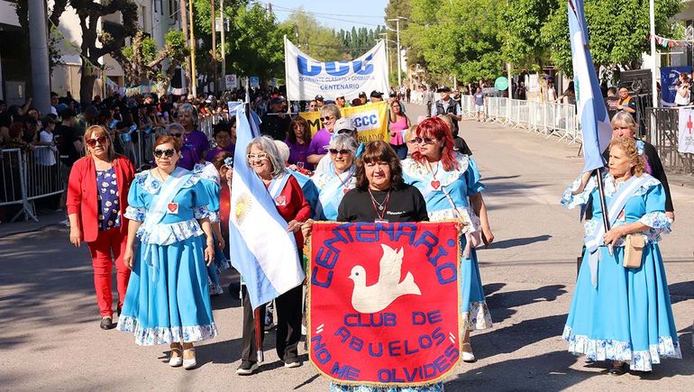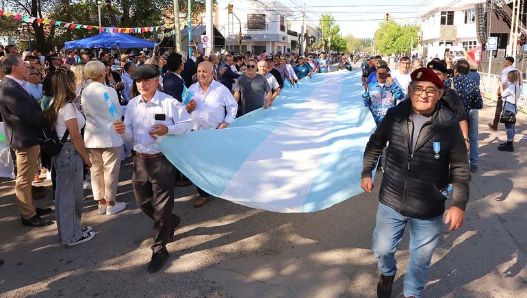 El intendente Esteban Cimolai encabezó el acto y posterior desfile cívico militar que se realizó desde las 16, con motivo del 102 Aniversario de Centenario. El importante evento, que congrega a las familias centenarienses año tras año, tuvo una duración de dos horas.