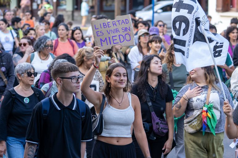 Con una amplia convocatoria, el centro de Neuquén se tiñó de violeta y verde con consignas vinculadas a derechos laborales, igualdad de género y reconocimiento de las diversidades.