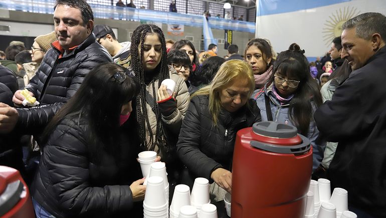 El polideportivo “Gigantes del Este” se vistió de fiesta para conmemorar el Día de la Bandera. Hubo anuncios, baile, chocolate caliente y tortas fritas.