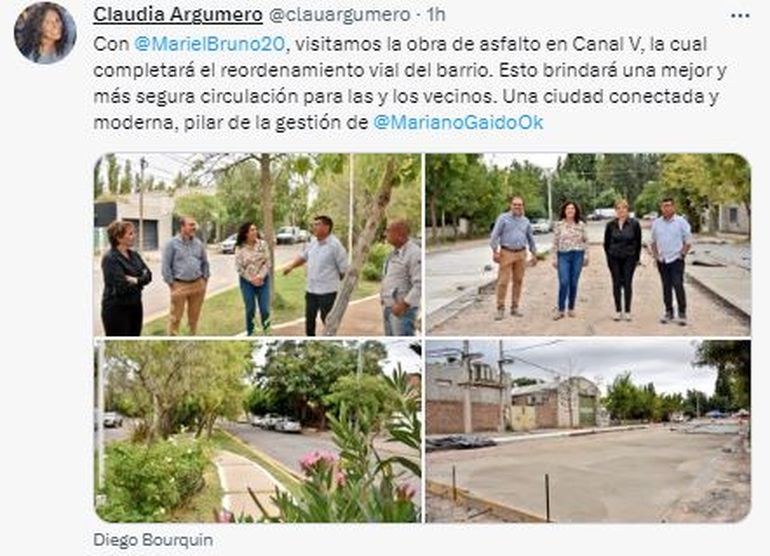 A su turno, la presidenta del Concejo Deliberante a cargo del Ejecutivo municipal, Claudia Argumero dijo: “Esto es palabra cumplida. como dice nuestro intendente Gaido. Vemos una una obra espectacular y todo el barrio quedará asfaltado”, mencionó la concejal y felicitó a los trabajadores y trabajadoras, “y a cada vecino y vecina poque acompañaron las tareas en el sector “.