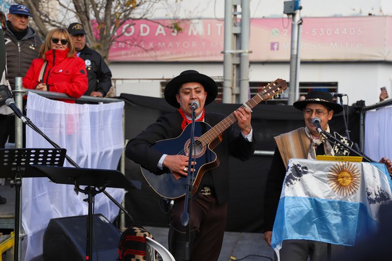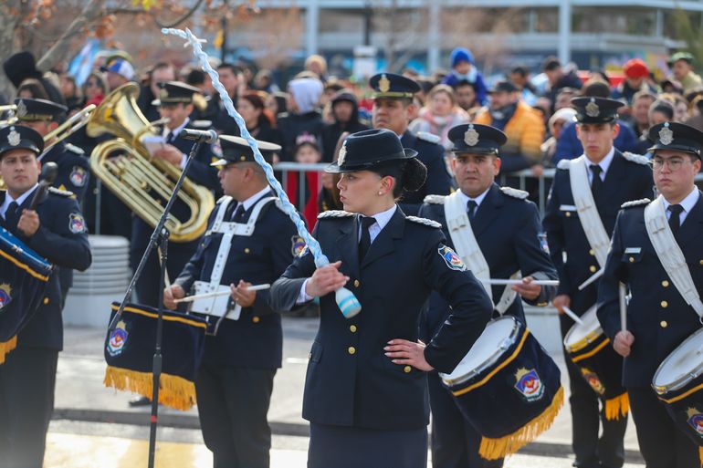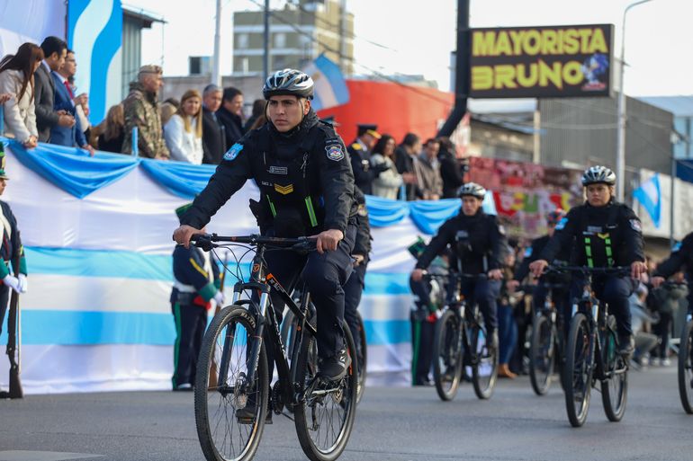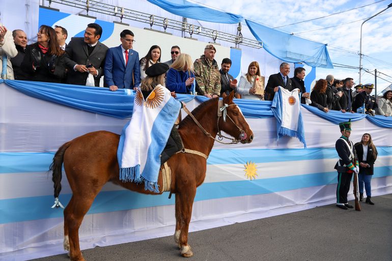 A lo largo de una hora y media, representantes de distintas instituciones de la administración pública, abanderados de colegios públicos y privados, fuerzas de seguridad, fuerzas federales y agrupaciones gauchas deleitaron con su paso a grandes y chicos que agitaban sus banderas celeste y blanca a lo largo de la calle Mitre-Sarmiento.