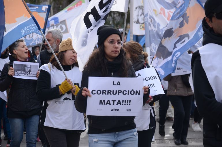 Pasado el mediodía, cientos de docentes se movilizaron por las calles para mantener vigente el reclamo para que se haga justicia por las muertes de la docente Mónica Jara y los operarios Nicolás Francés y Mariano Spinedi en la fatal explosión.