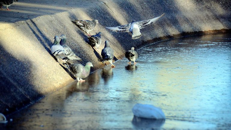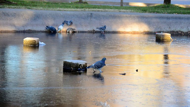 Esta fresca que ya estaba anunciada sorprendió igual hasta las palomas que habitúan los canales de riego y fuentes que estaban congeladas antes de que saliera el sol. También a los automovilistas y motociclistas que tuvieron que circular con mucho cuidado para no patinarse.