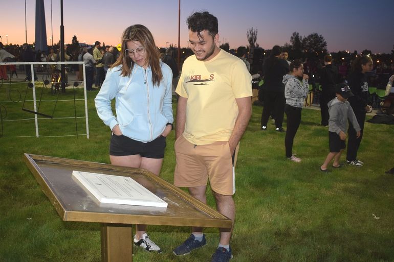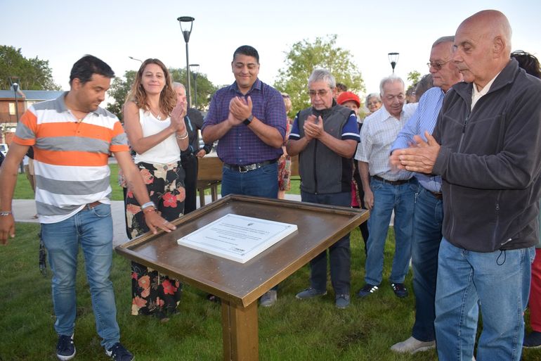 Fue inaugurada una plaza en el Parque Bicentenario de la ciudad del centro de la provincia. El emotivo mensaje del reconocido y sus recuerdos en Neuquén.