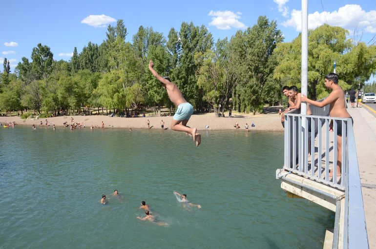 Ni el agua del río Limay ni los árboles del Parque Central alcanzaban para aliviar el calor cuando el termómetro rozaba los 40°C, a las 16. Ante las altas temperaturas que azotaron nuevamente a la región, los neuquinos prepararon sus sombrillas, reposeras y conservadoras para ir a instalarse a la orilla del río, donde disfrutaron de bebidas frescas y los más arriesgados mates.