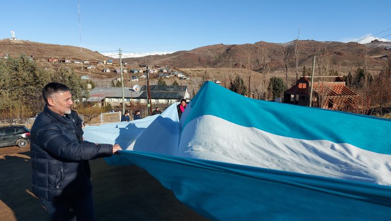 Este miércoles se llevó a cabo la sexta edición del despliegue de la bandera más larga de Neuquén. "Todo comenzó como una actividad pedagógica impulsada por los docentes Lucas González y Aarón Luna, con los alumnos de 6° y 7° grado en el 2018, pero fue tan atrayente y convocante la iniciativa que se sumaron las familias de los estudiantes y el personal en general de la institución", contó a LMNeuquén Manuel San Martín, intendente de Andacollo.