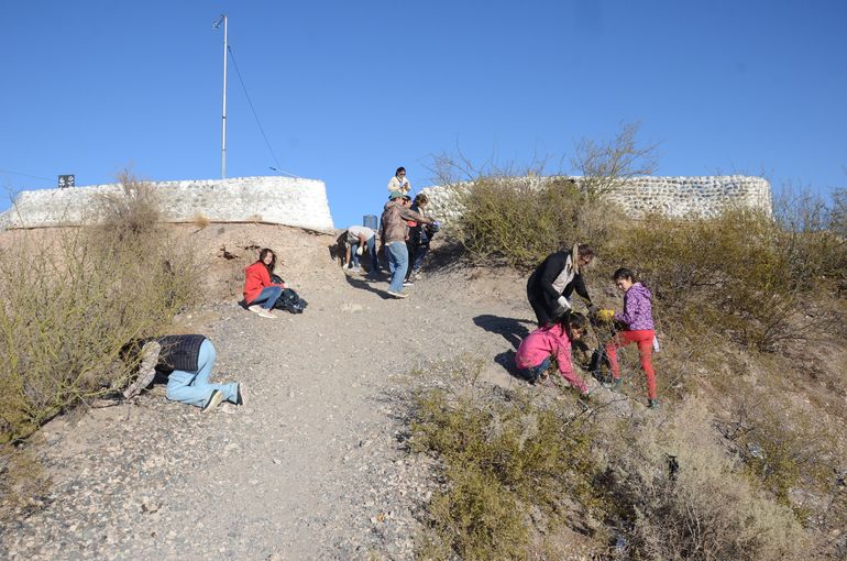 Vecinos e integrantes de un grupo de Scout del barrio La Sirena decidieron limpiar la barda donde se levanta el Balcón del Valle, en el norte de la ciudad de Neuquén, en el marco del Día Mundial de la Tierra.