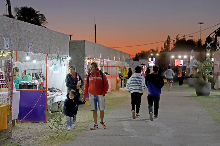 Vecinos y turistas atraídos por el gran despliegue de puestos artesanales, juegos y bandas de rock disfrutaron de la primera noche de la Expo Plottier.