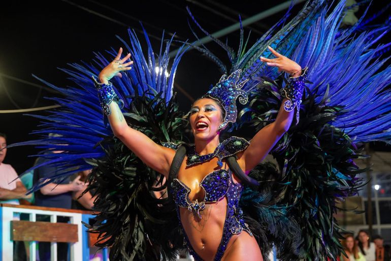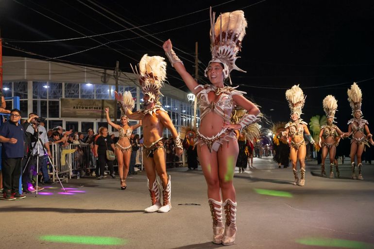 La propuesta contó con la presencia de las comparsas nacionales de renombre provenientes de Gualeguaychú, Marí Marí y Kamarr, que deslumbraron con su puesta en escena, vestuario y energía. También participaron comparsas regionales y locales: Agua de Fuego (Cutral Co), Xiomara, Papelito (Junín de los Andes), Wara de los Andes (San Martín de los Andes), junto a las murgas Los Amantes de la Noche y Corazones de Oro, completando una grilla diversa que integró a toda la región.