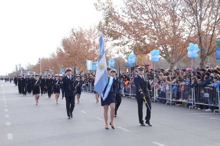 El desfile contó con la participación de fuerzas de seguridad, instituciones educativas, organizaciones sociales y culturales, y agrupaciones gauchas que desfilarán a caballo, evocando las raíces criollas y el legado independentista.
