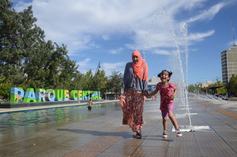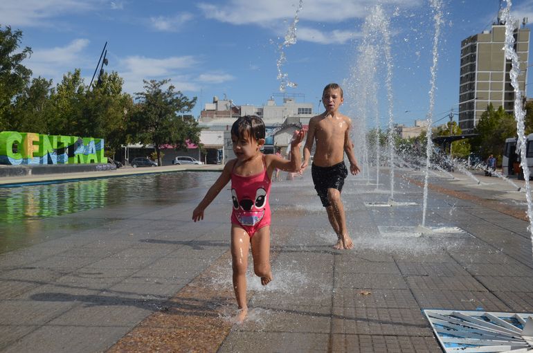 Ni el río Limay ni los árboles del Parque Central alcanzaban para aliviar el calor. Ante las altas temperaturas que azotaron nuevamente a la región, los residentes utilizaron hasta las fuentes de agua del centro de la ciudad para refrescarse.