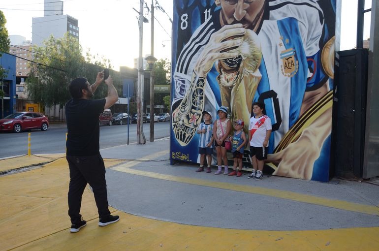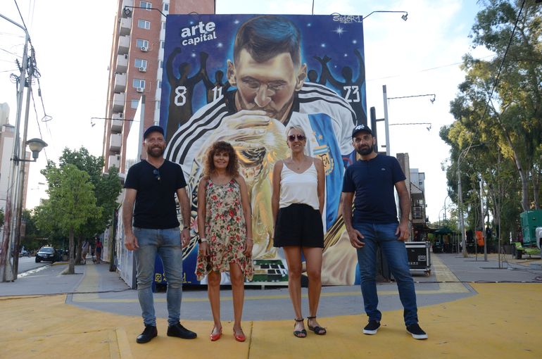 La obra fue realizada por el artista Sider, y se trata de una imagen mundialista, en la que se encuentra Lionel Messi besando la copa y otros de los jugadores importantes de la selección Argentina de fútbol detrás.