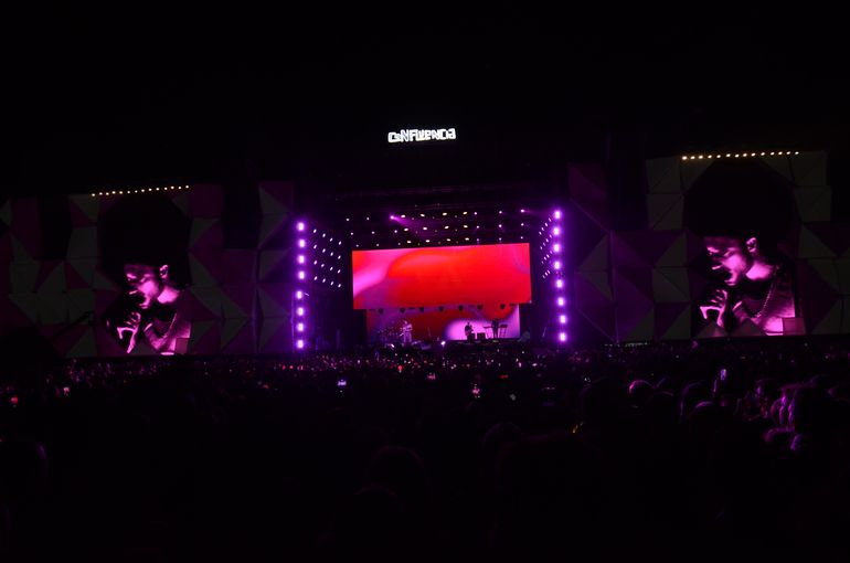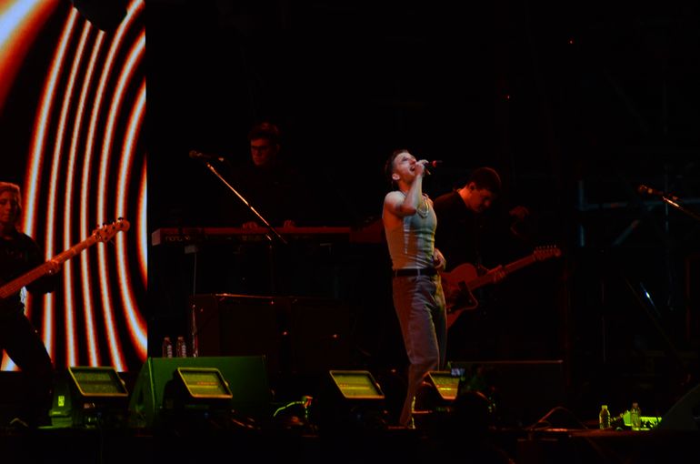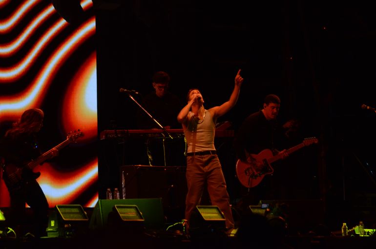 "Buenas noches Neuquén", dijo el chico de 25 años, que quedó en musculosa en el segundo tema, hace delirar a varios miles que se agolpaban en el predio de la Isla 132. "Es un placer estar acá esta noche", agregó, mientras comenzaban a sonar temas de sus albumes Caravana y Oscuro Éxtasis.