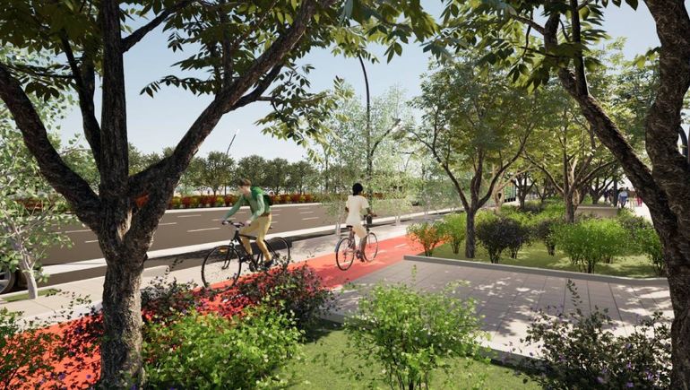 Y brindó más detalles: "cuatro carriles por mano, estacionamiento, veredas anchas, bicisendas continuas en ambas manos, corredor verde de punta a punta equivalente a 25 plazas".