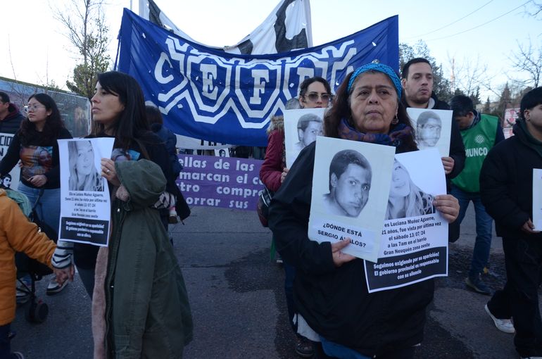 Este viernes por la tarde, familiares, amigos y organizaciones sociales marcharon por las calles de Neuquén capital para exigir justicia por Sergio Ávalos, desaparecido en 2003, y Luciana Muñoz, de quien no se sabe nada desde julio del año pasado. A 22 años de la desaparición del joven estudiante y a 11 meses de la de Luciana, ambas causas se encontraron en una misma consigna: “Basta de impunidad”.