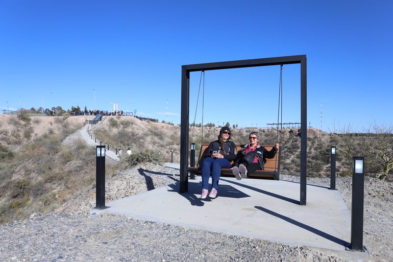 LMNeuquén fue parte de la inauguración, y como se puede apreciar en las imágenes, los niños que acompañaron a sus familias ya se apropiaron del espacio. Hay una hamaca también para los vecinos y vecinas que prefieren contemplar el paisaje sin mover el cuerpo. Así, el lugar emblemático para la ciudad se resignifica con una obra que es un plus de valor a la clásica postal del mirador.