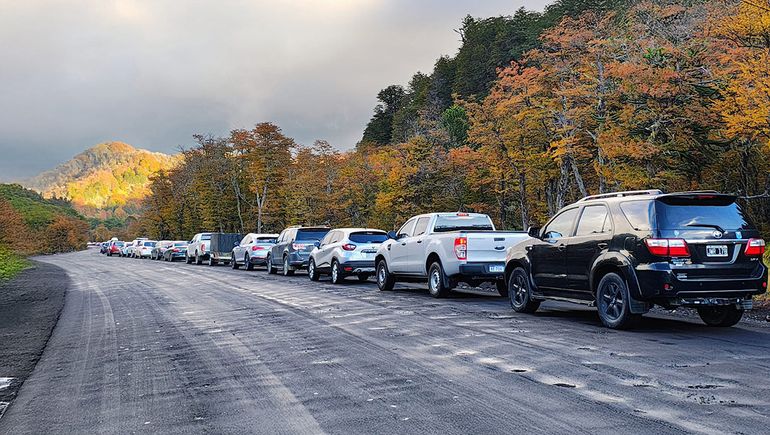 En tanto, en el inicio de la Semana Santa, el paso fronterizo de Pino Hachado ya registraba una fila de 300 vehículos en horas del mediodía.