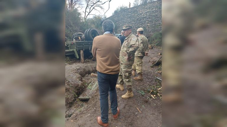 Luego de visitar a los sobrevivientes que están alojados en el Hospital Ramón Carrillo, la autoridad se dirigió hacia el lugar donde volcó y cayó el camión oficial del Ejército en el que se trasladan 22 soldados del Regimiento de Caballería de Expedición de Montaña 4, ubicado en San Martín de los Andes.