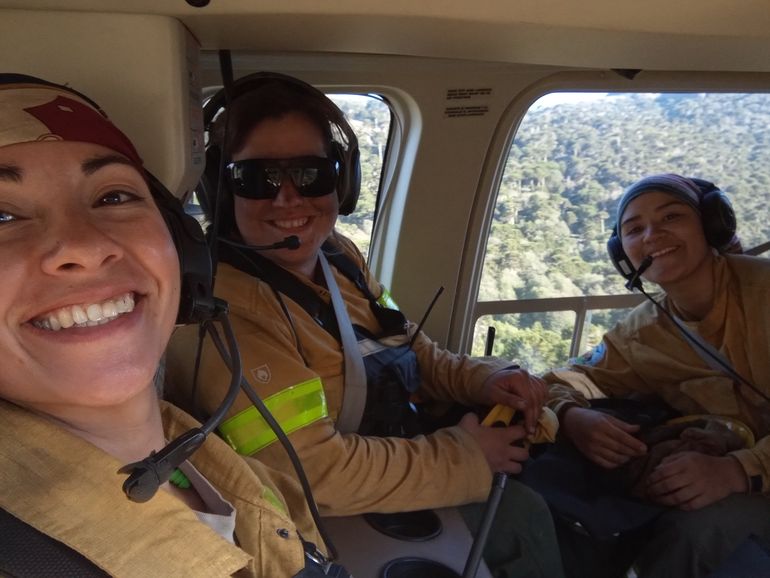 Del otro lado del teléfono, en la base de operaciones, Celeste pide disculpas por su voz disfónica: el humo y el calor le afectaron las cuerdas bocales. Habla bajo, pero se hace entender muy claro. Tiene 29 años y es de San Rafel, Mendoza. Hace 3 años vive en Aluminé, desde que comenzó a trabajar como brigadista de incendios, comunicaciones y emergencias del Parque Nacional Lanín. Además, es técnica en Seguridad e higiene, fotógrafa profesional y docente en el CFPA 4 de su pueblo. Vino a Neuquén por la fascinación que siente por los pehuenes milenarios y sintió la necesidad de hacer algo para protegerlos: defenderlos se volvió el motor de sus días.
