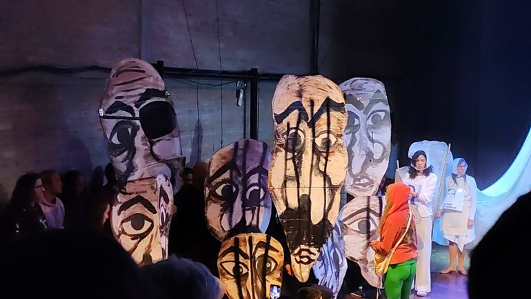 “Quisimos homenajearlos a través de los juicios, que fue el legado más importante que nos dejaron”, dijo Micaela Araujo, actriz, integrante de la asociación a LMNeuquén luego de sortear el patio lleno de conversaciones y abrazos, donde colgaban los carteles con los nombres y fotos de cada detenido y desaparecido. “La idea de la hydra capitalista y la figura de la madre, que no la mata porque los genocidas no están todos presos, pero la madre los aprisiona”, agregó.