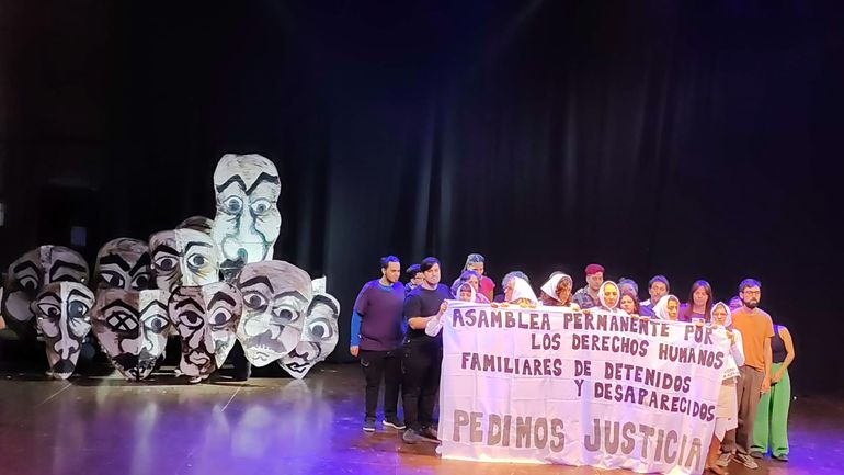 La intervención final ocurrió a las 0 horas del 24 de marzo y a 49 años del golpe de Estado de 1976, relacionaron hechos de la dictadura con el presente. “Entendemos que lo que pasó no terminó el 10 de diciembre del 83 sino que las consecuencias las seguimos viendo hasta ahora”, consideró Araujo. Ante la mirada atenta de los niños y niñas, y todo el público, las actrices que interpretaban a las madres comenzaron a leer una serie de datos que todos juntos, sintetizaban una hoja de ruta:
