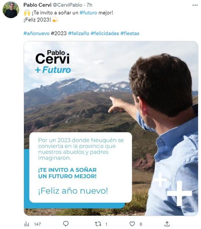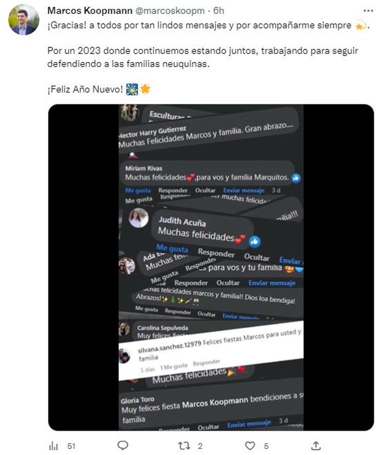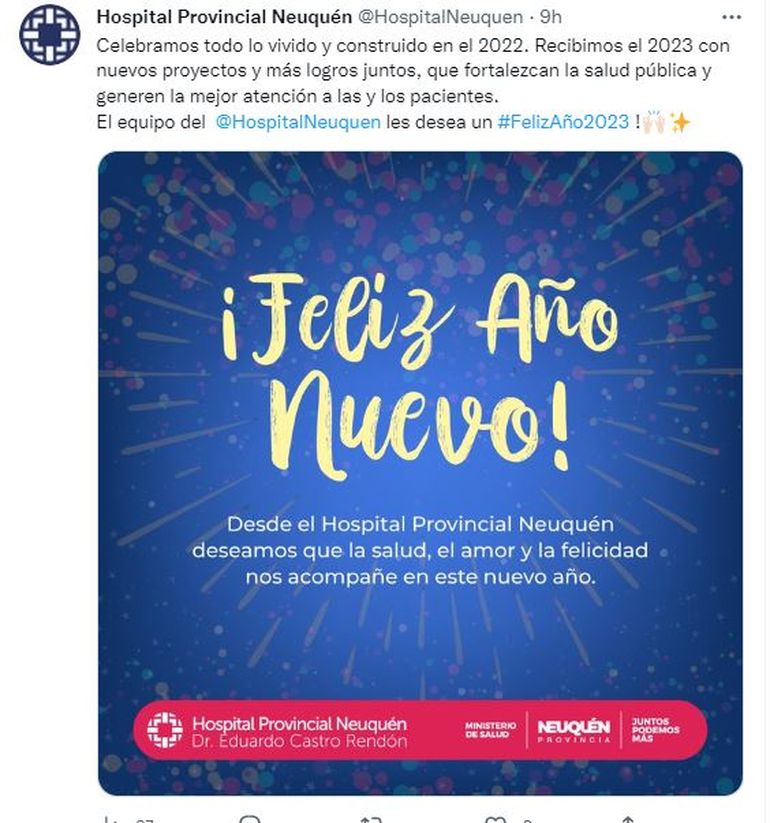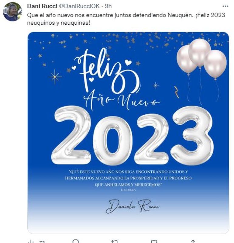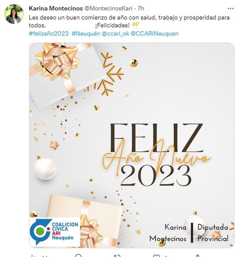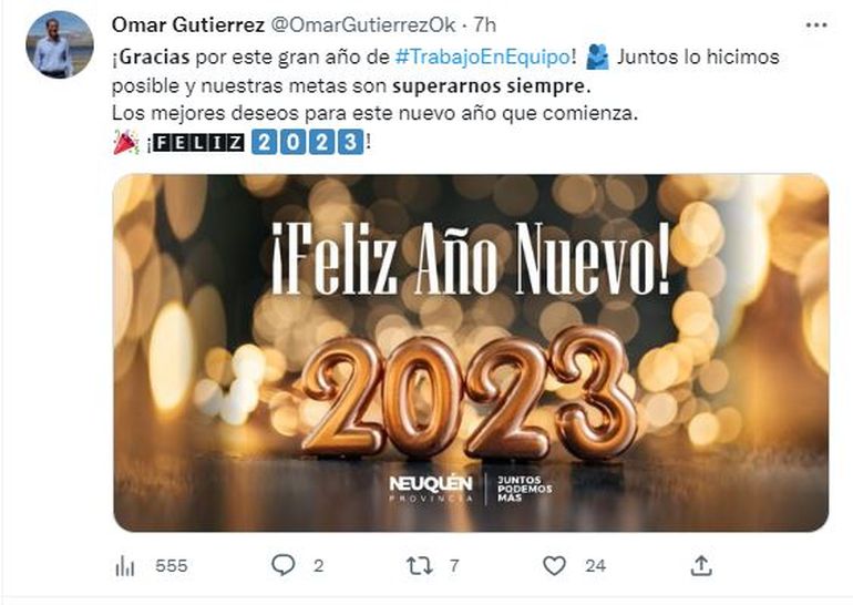Desde el gobernador neuquino Omar Gutiérrez, pasando por distintos representantes del Gobierno, de la Legislatura como del Concejo Deliberante, hasta referentes de la oposición, los saludos se multiplicaron en el último día del 2022. También se sumaron instituciones como jefes comunales del interior provincial.