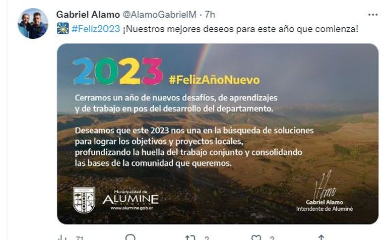 Las redes sociales fue el canal utilizado por muchos representantes de la política e instituciones sociales para enviar sus deseos para el 2023. Algunos hicieron reflexiones sobre lo que pasó en el año y otros directamente se refirieron a los desafíos que acarrea el nuevo año.