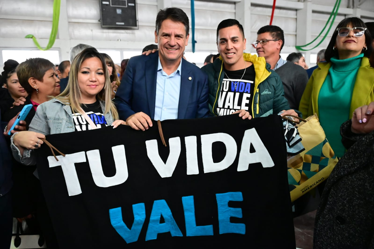 “Tenemos estas ciudades deportivas, estas ciudades de Dios, tanto acá en el barrio San Lorenzo, como en el barrio Confluencia, como en Parque Industrial, en el barrio Hi.Be.Pa. y estamos construyendo la quinta en el barrio Melipal. Me comprometo ante ustedes que también vamos a incorporar esa ciudad deportiva para que ustedes estén presentes y puedan ocupar ese espacio público”.