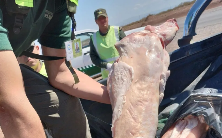 El Control de Ingreso Provincial de Productos Alimenticios (CIPPA) en un operativo conjunto con Gendarmería Nacional, incautó 25 carcasas de caprinos provenientes de una faena clandestina. La camioneta que fue interceptada en Ruta 7 iba rumbo a Añelo.
