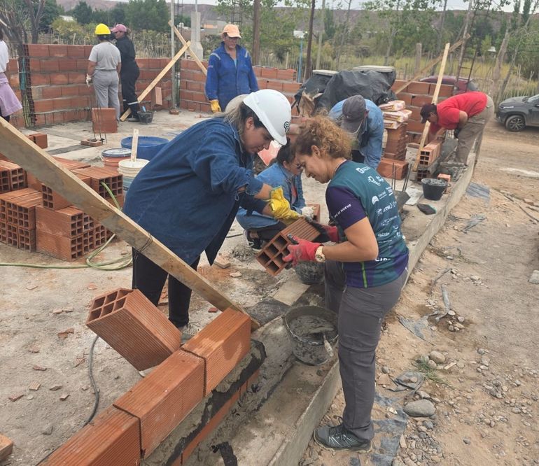 Todos los sábados, el predio donde ya se levantan las paredes de la casa de una de las integrantes del grupo se llena de mujeres con ganas de aprender. Muchas llegan al fin de semana cansadas, después de jornadas de trabajo y del cuidado de sus hijos; algunas viajan desde localidades cercanas como Cinco Saltos o Cipolletti. Pero al llegar, el aprendizaje del oficio convive con algo más profundo: la solidaridad, la empatía y la contención.
