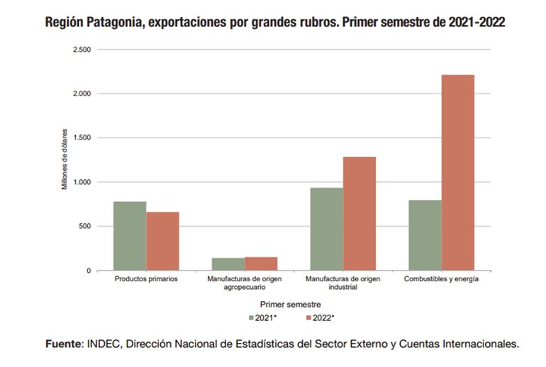 En la región, se destacaron las exportaciones de combustibles y energía (CyE) por 2.212 millones de dólares (51,3% del total exportado por la Patagonia), con un aumento de 178,2 por ciento interanual.