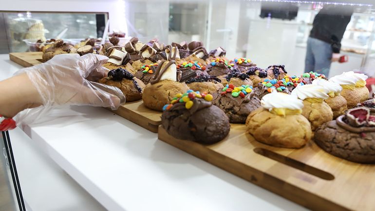 Hoy la pastelería ofrece 10 cookies diferentes. Tienen de red velvet, ferrero rocher, coco, choco oreo, cocho marroc, cheese queen, limone, hersheys, y pistacho. Salen entre 5500 y 6 mil pesos cada una y son un furor.