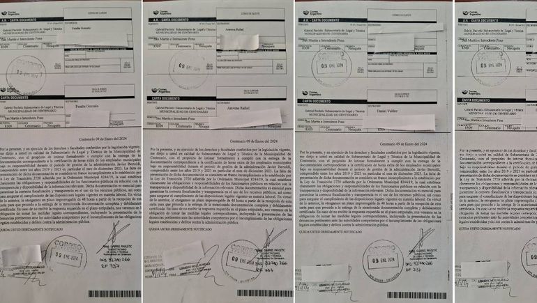"La falta de dicha documentación se considera un franco incumplimiento a la Ley de Transición 2027, adherida por ordenanza municipal 8244/19, la cual establece claramente las obligaciones y responsabilidades de los funcionarios públicos en relación con la transparencia y disponibilidad de la información relevante", indican las cartas documento.