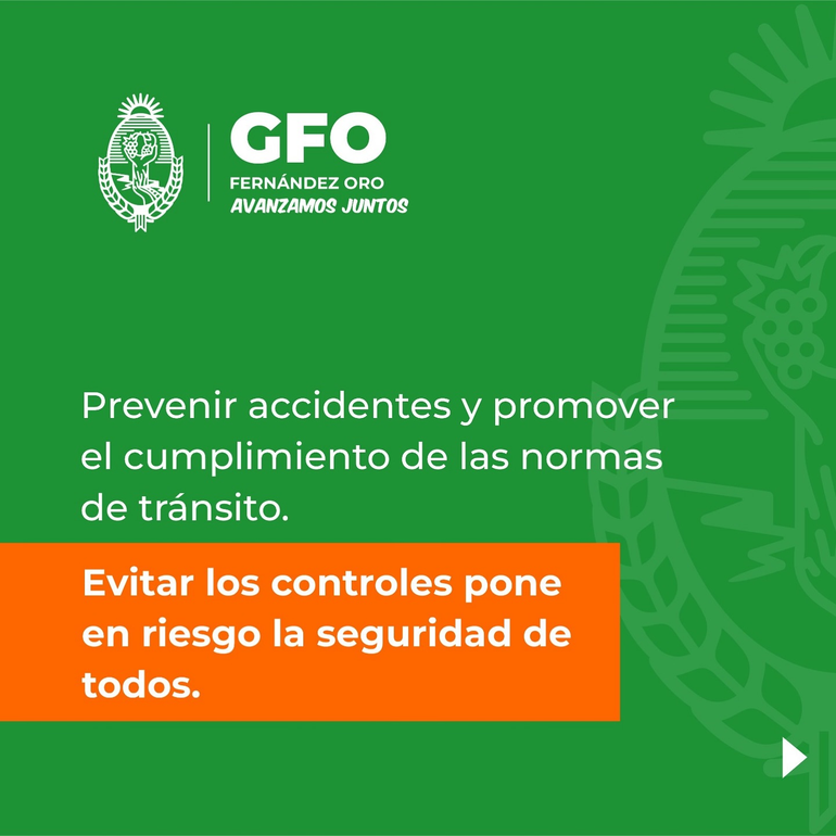 “Prevenir accidentes y promover el cumplimiento de las normas de tránsito. Evitar los controles pone en riesgo la seguridad de todos. Evitemos sanciones innecesarias y que el compromiso y respeto sea mutuo”, sugirió.