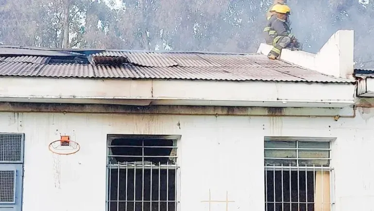 Ante el aviso a los bomberos, intervinieron con una autobomba para extinguir las llamas que se habían propagado a través del entretecho de machimbre de tres aulas, de la sala de nivel inicial y sobre un pasillo.