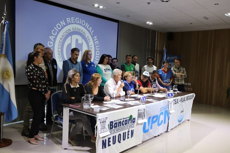 La delegación neuquina de la Central sindical brindó una conferencia de prensa. La medida empieza este miércoles y el paro total será el jueves.