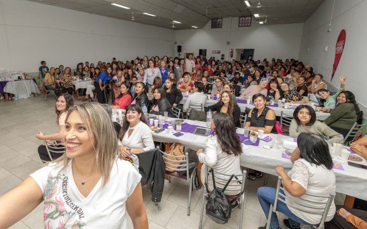Las más de 250 mujeres que se reunieron en Plottier discutieron también sobre la prevención de la violencia de género y para eso escucharon a la responsable de la Comisaría N° 46, Patricia Silva y a la sargenta Verónica Peralta, quienes son parte de una red barrial de prevención de la zona.