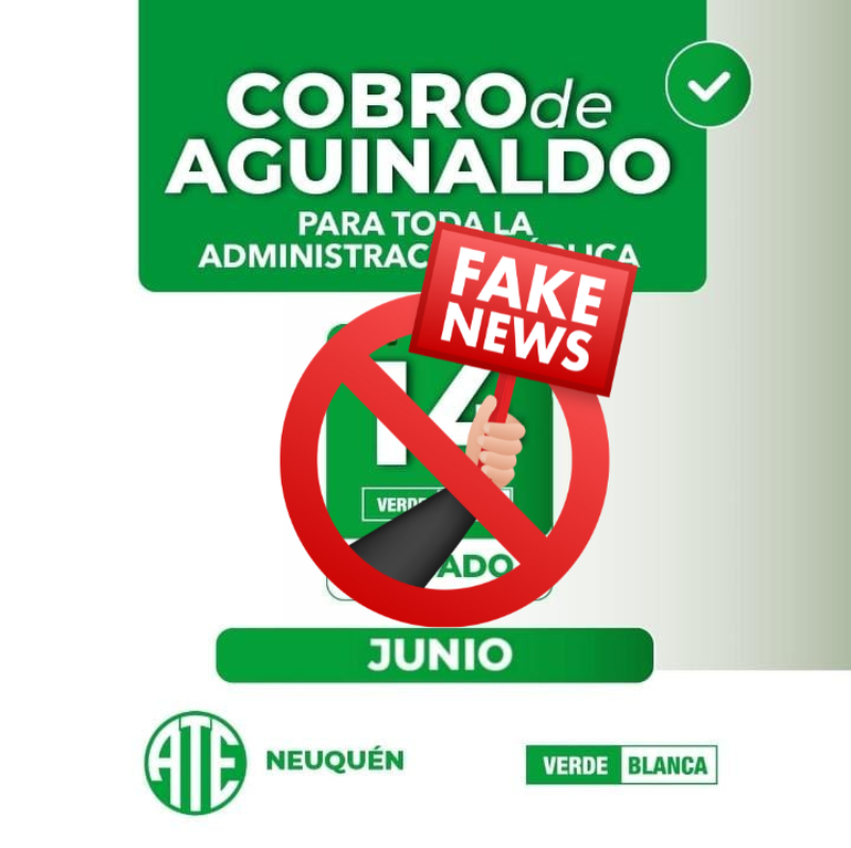 A partir de las expectativas que suele generar la fecha de pago, en las últimas horas circuló una noticia falsa sobre el pago, que fue desmentida luego por el mismo ATE Neuquén y fuentes oficiales del Gobierno provincial.